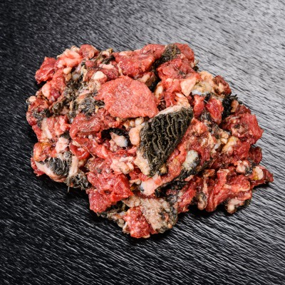 Durch den grünen Pansen mit seinen pflanzlichen Rückständen und der Zugabe von Rindfleisch ist dies ein idealer Mix für alle Rassen und Altersklassen.